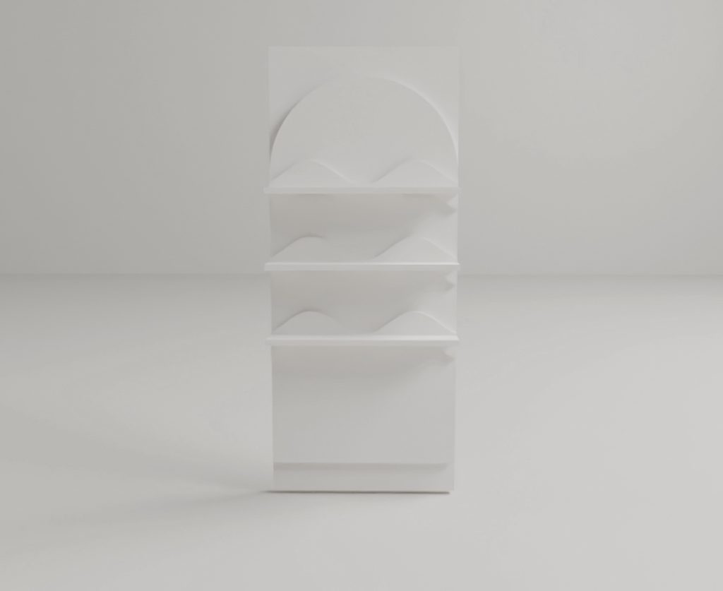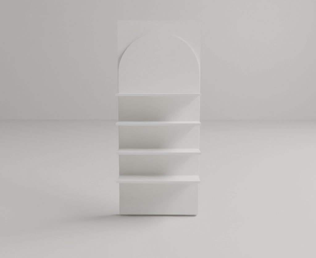 The 6 by 3 Christopher Kit features a Myriad Counter with an optional top riser, allowing for added height and visual emphasis. It also includes a set of Square Bear Plinths, offering flexible and stylish display options to suit a variety of product types. Completing the setup is the elegant Wave Arch shelving, designed to bring both functionality and a refined visual impact to the overall presentation.