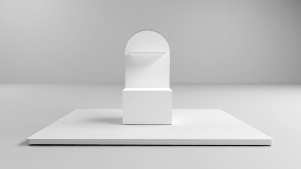 A versatile display piece, perfect for showcasing products while offering storage in the bottom cupboard. Its rounded top adds a touch of softness to the overall design.