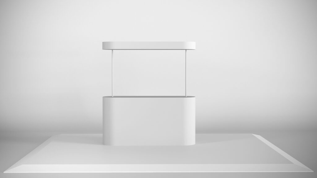 The Poppet Kit features a large counter, providing ample space to interact with multiple customers at once while effectively showcasing your product. Its open design encourages engagement and creates a welcoming display environment.