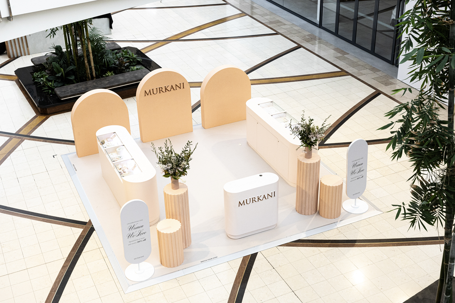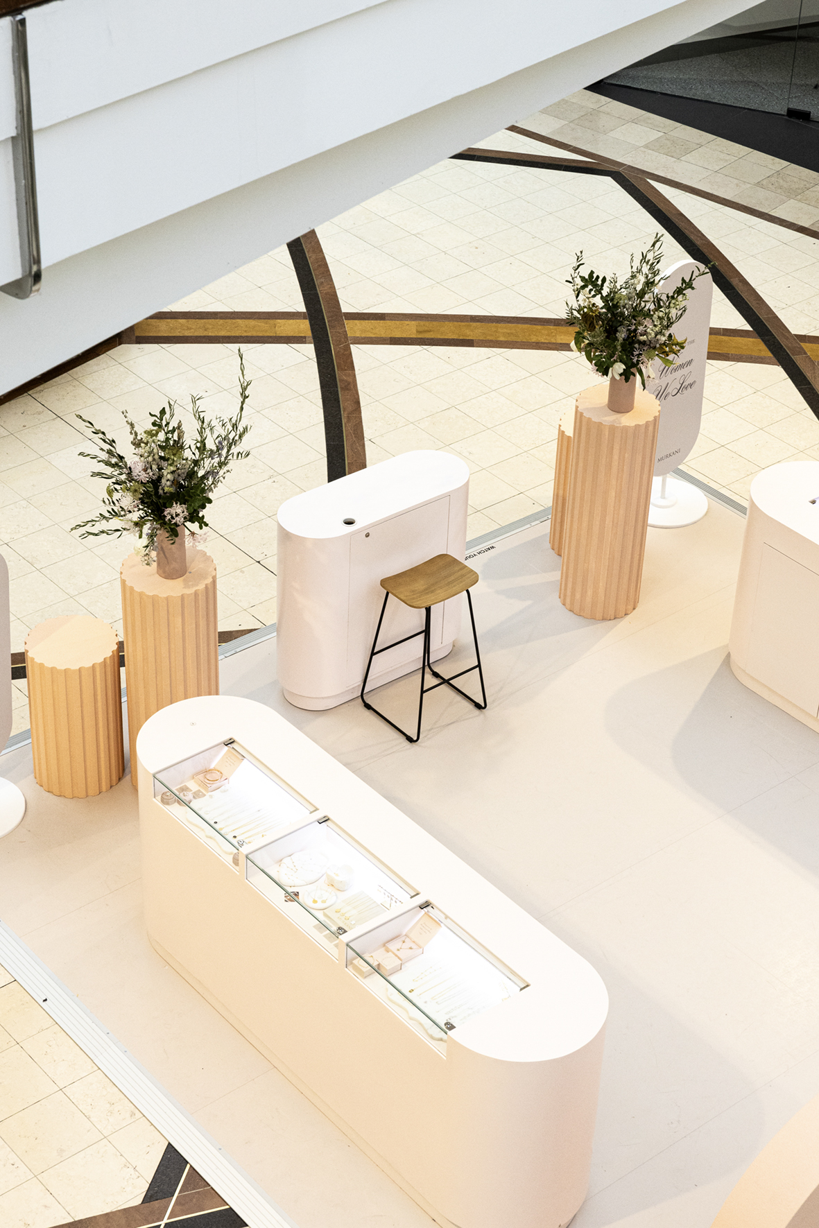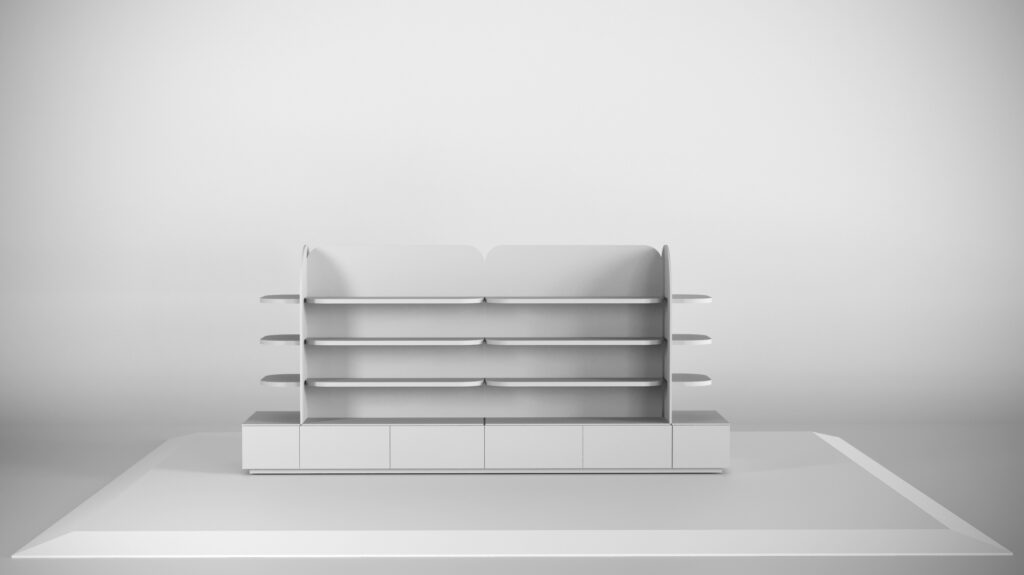 A versatile setup that combines product display with seating for customer interaction and dedicated space to showcase your brand. It’s ideal for creating an engaging and functional environment.