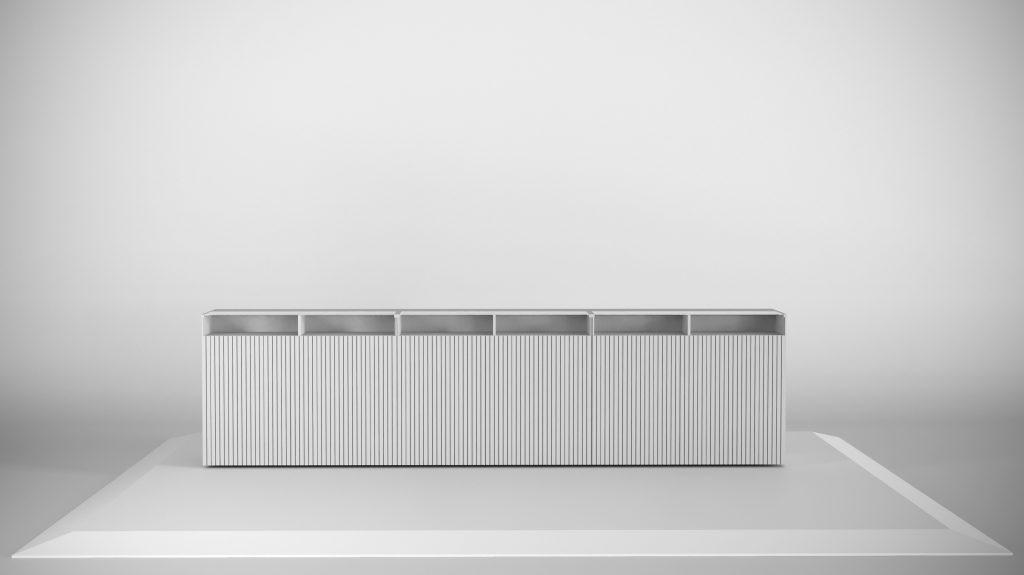 Sophisticated and modern design that enhances open spaces while providing a functional display for engaging with customers.