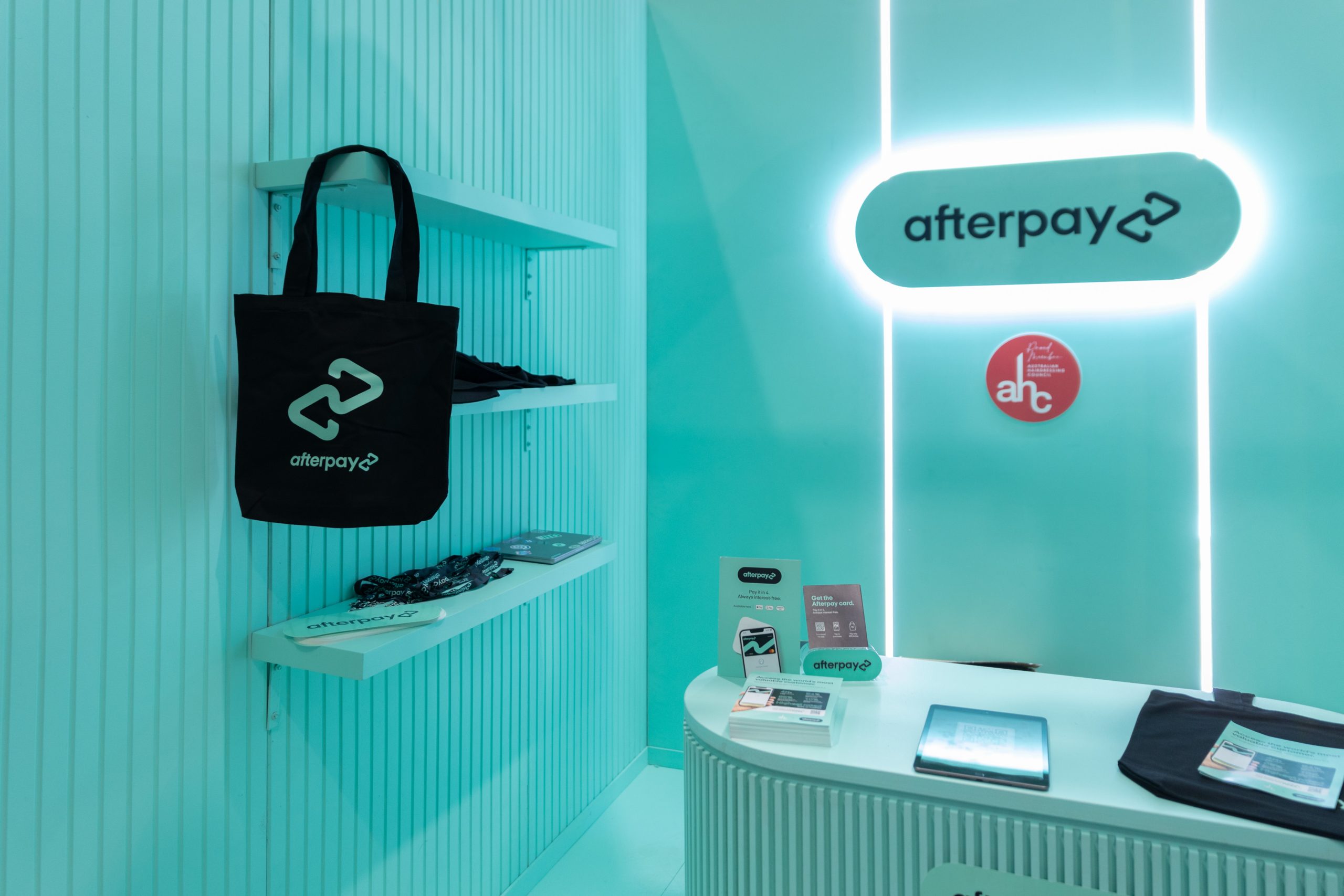 Afterpay made a bold statement at the Sydney Hair Festival with an eye-catching pop-up designed to stand out in a busy trade hall.
