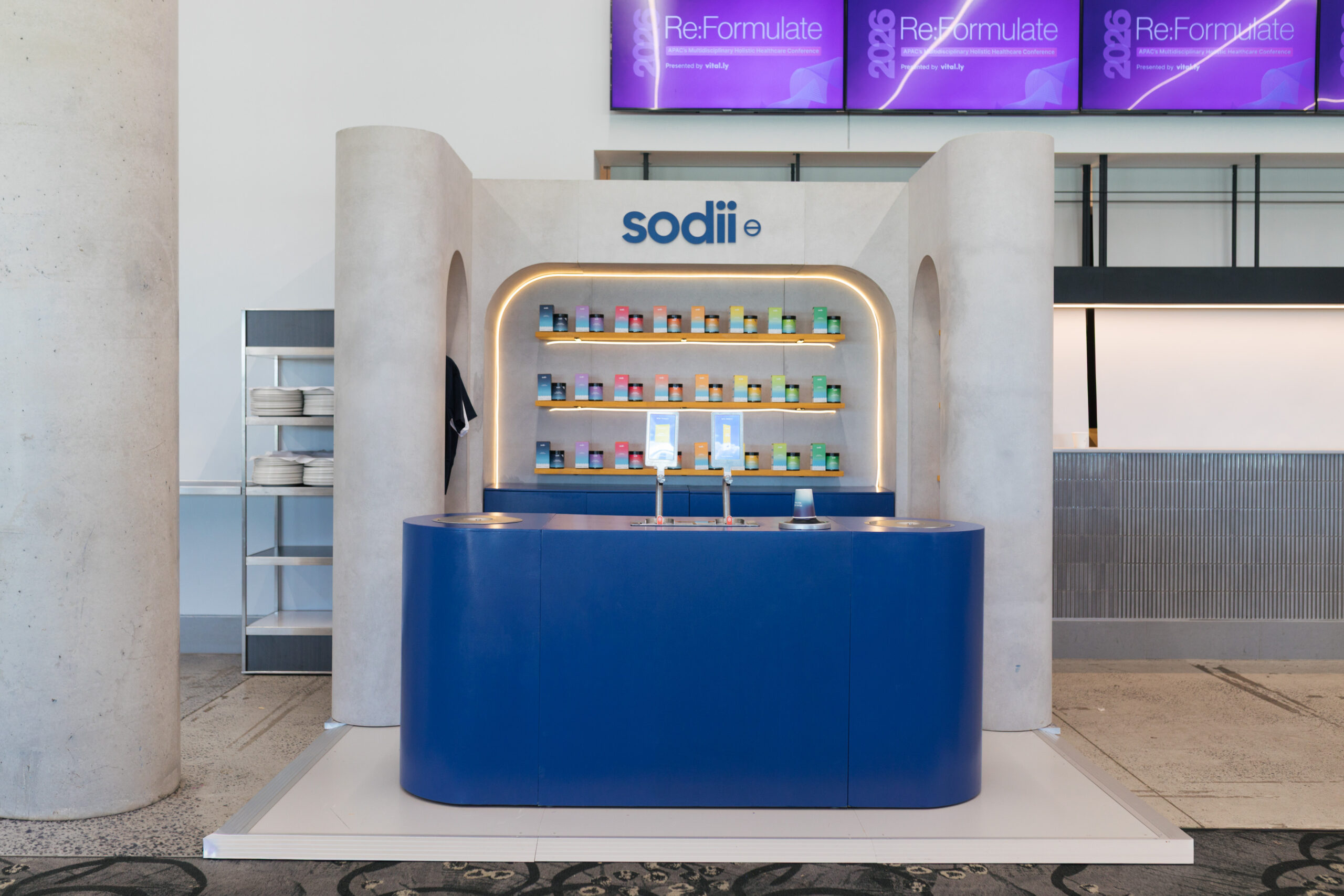 Sodii required a smaller exhibition stand for the 3×3 space at the Reformulate Expo in Sydney, while still maintaining the bold visual identity of the original 6×3 stand. The stand needed to feel premium, cohesive, and recognisably part of the same design family. Functionality was also key, as the space needed to support product display, brand storytelling, and visitor interaction. It had to be practical for installation and transport while delivering the same impact as the larger stand. The goal was to create a compact but powerful presence that would perform in a busy exhibition environment.